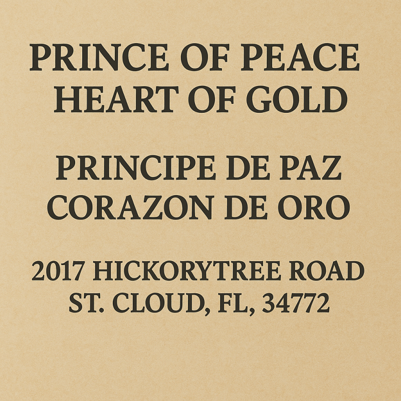 Prince Of Peace Heart Of Gold is a church in St. Cloud, Florida, dedicated to creating a welcoming and inclusive space where faith meets family. We believe in spreading love, kindness, and hope to all who walk through our doors.